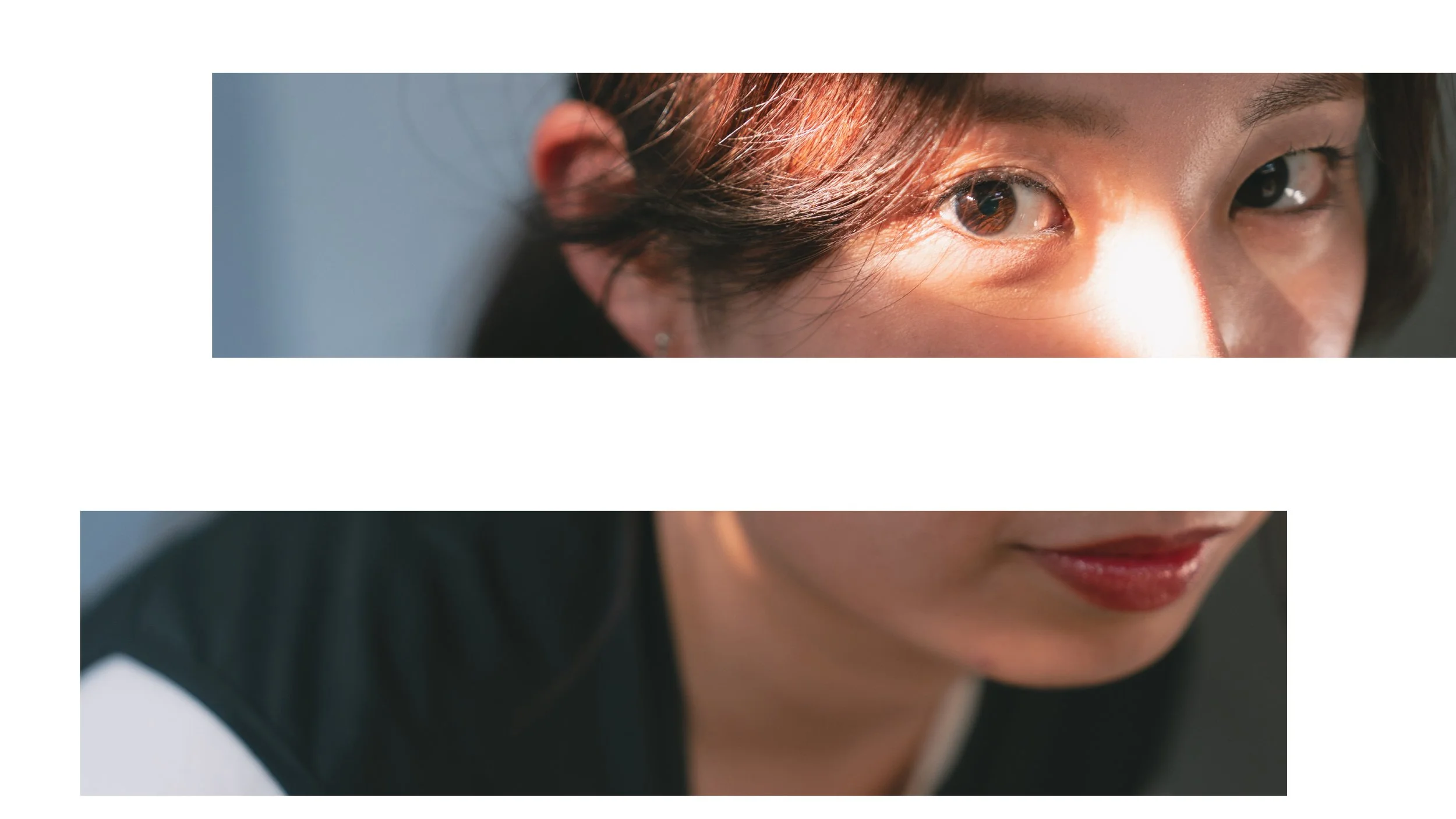 人物のアップ写真。1人の女性が映っており、片方の目と唇が見える。